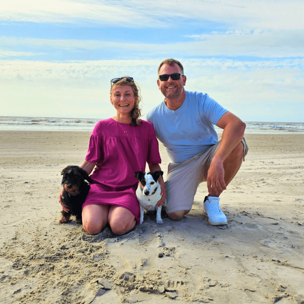 Hey, schön, dass du hier bist! Wir sind Joanna, Sven, Lumpi und Carlo – und camppaws ist unser Herzensprojekt. Entstanden ist alles dort, wo die besten Geschichten anfangen: draußen, irgendwo zwischen Waldweg, Hundeleine und Van.
